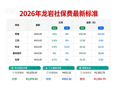服务关键词:龙岩2026年社保标准多少,外地公司在龙岩用工如何缴纳社保,龙岩办事处社保怎么交,龙岩五险一金代买,龙岩本地劳务派遣公司哪家专业,龙岩职工社保外包,龙岩企业社保代缴服务方案。